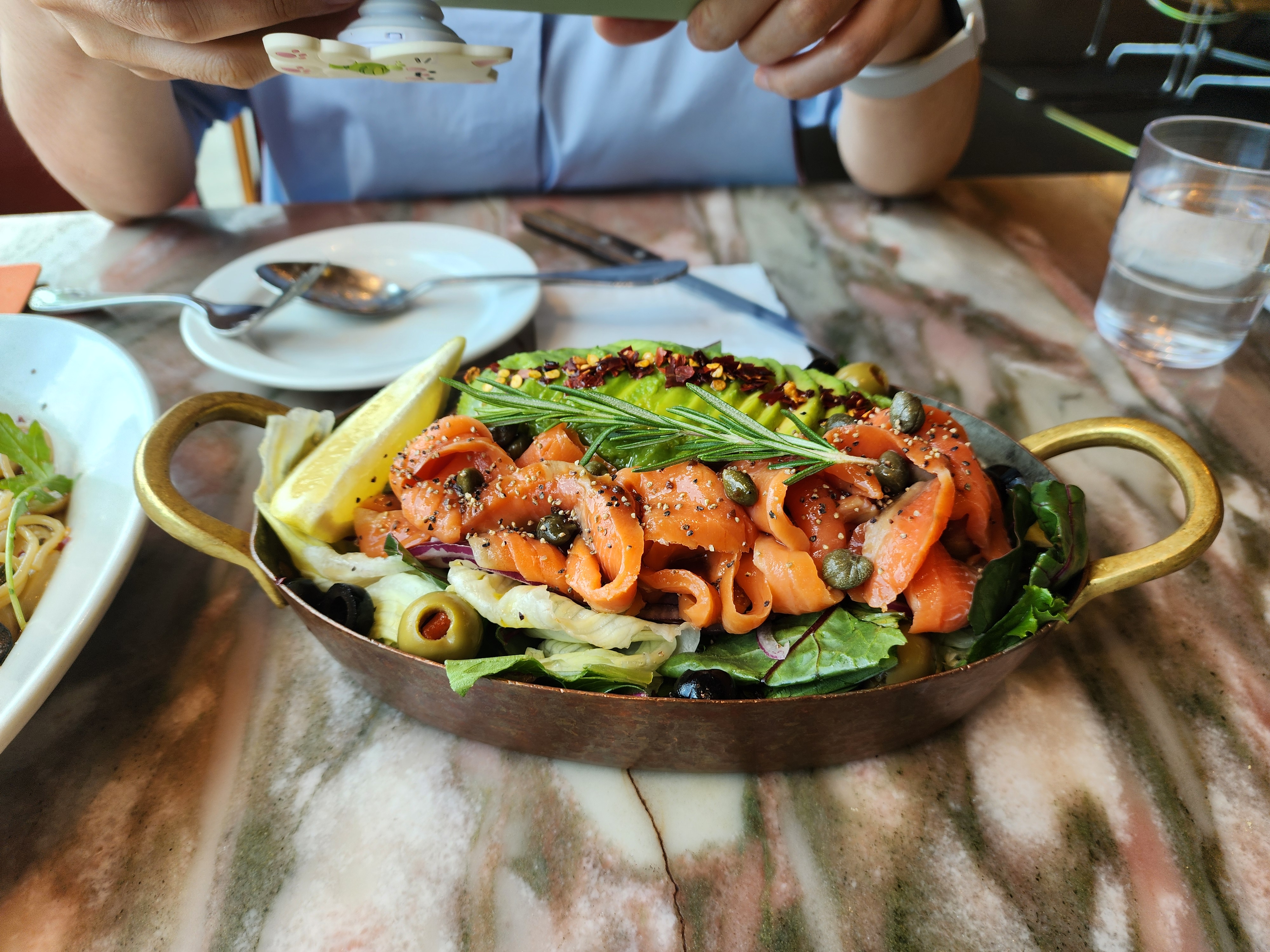 연어와 아보카도가 같이 들어 있는 샐러드를 좋아합니다.