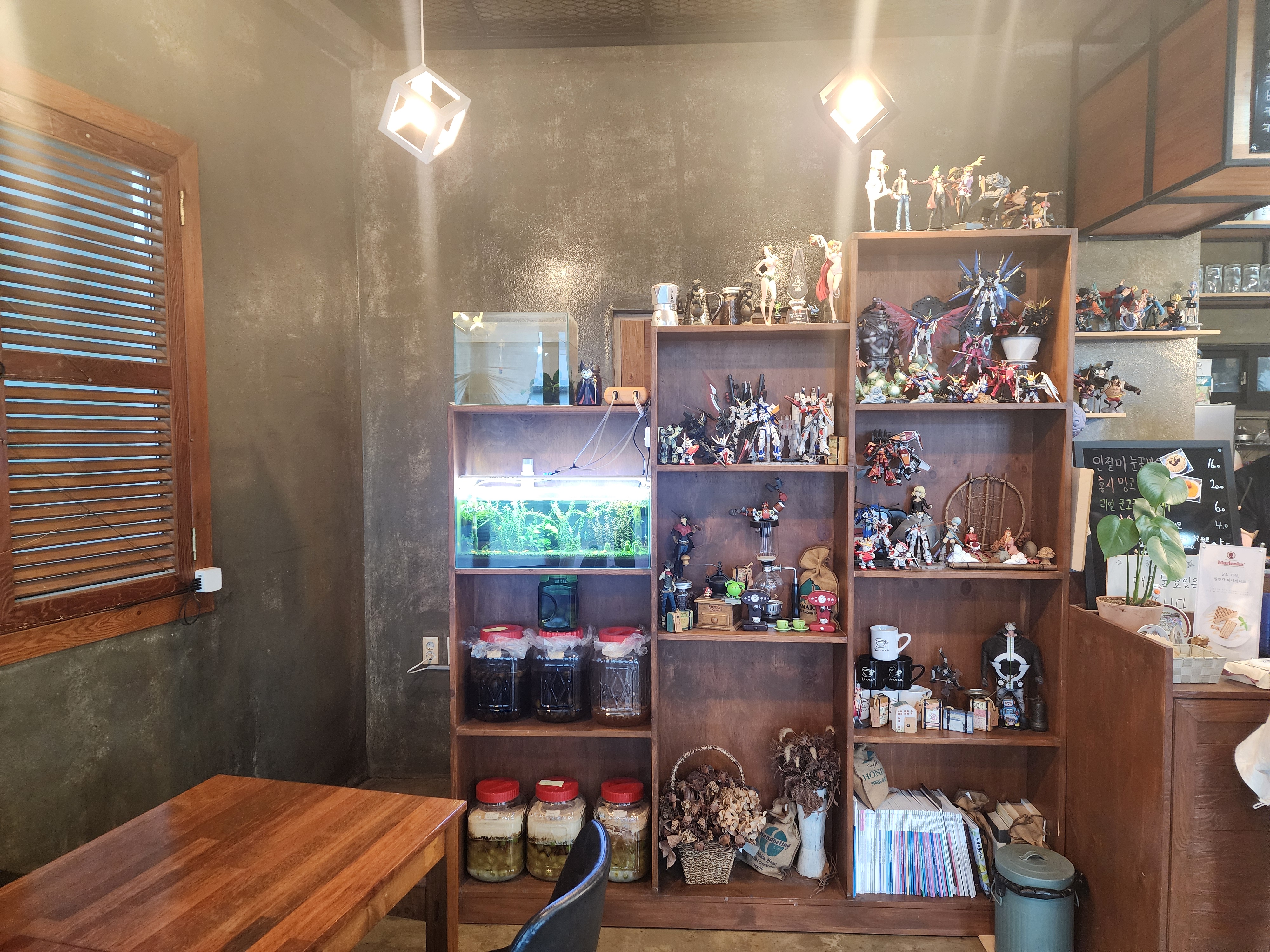3.카페안에 수집품들과 어항